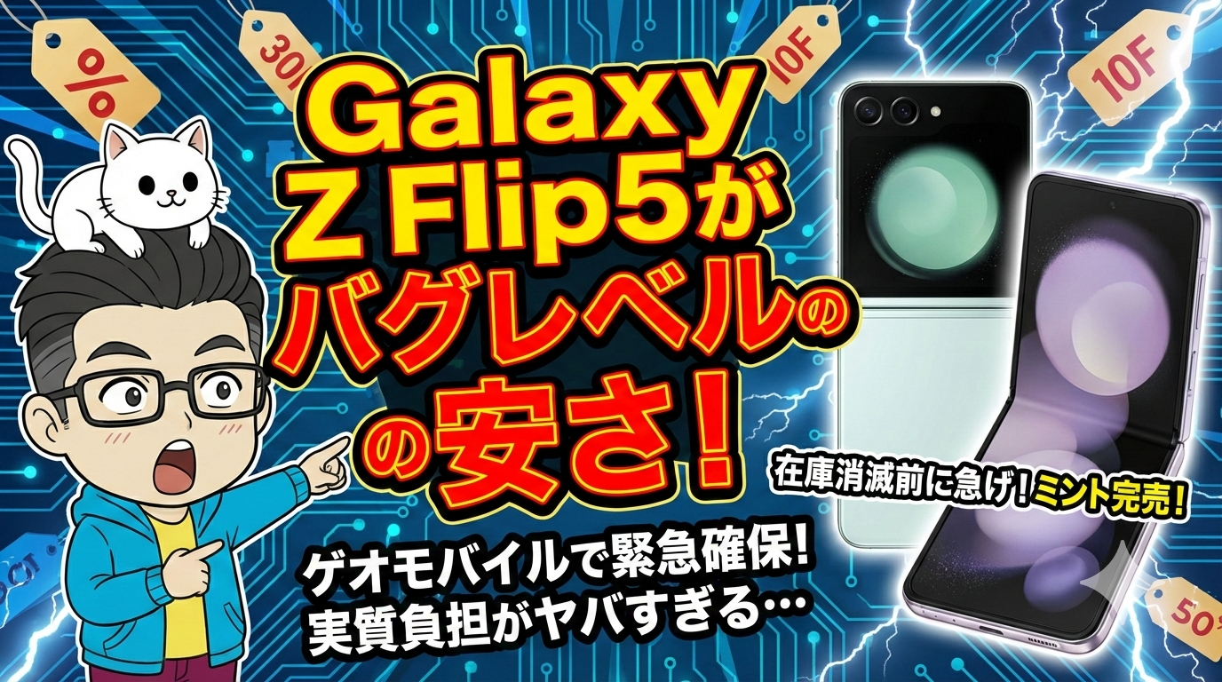 【中古が熱い】ゲオモバイルのGalaxy Z Flip5キャンペーンがバグレベルの安さ!実質負担を計算してみた