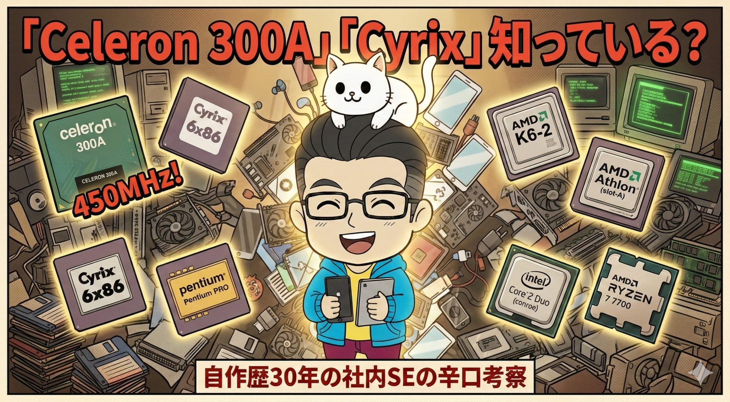 あと、「Cyrix(サイリックス)」のCPUにお世話になったことがある方。……間違いなく、私と同世代のおっさんです。 ぜひコメント欄で昔話に花を咲かせましょう!