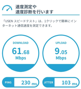 結果は……大満足!! Ping(Jitter)の応答速度こそ直挿しに比べて少し遅延がありますが、ダウンロード速度自体は直挿しとほぼ遜色のないスピードを叩き出しました。10年前の機種で、しかも300円でこれだけしっかり通信をこなしてくれるなら文句なしです。5G非対応なのも、私の用途的には全く問題ありません。(画像はPing・JItterが悪い結果ですが、通常40ms程度が多い)