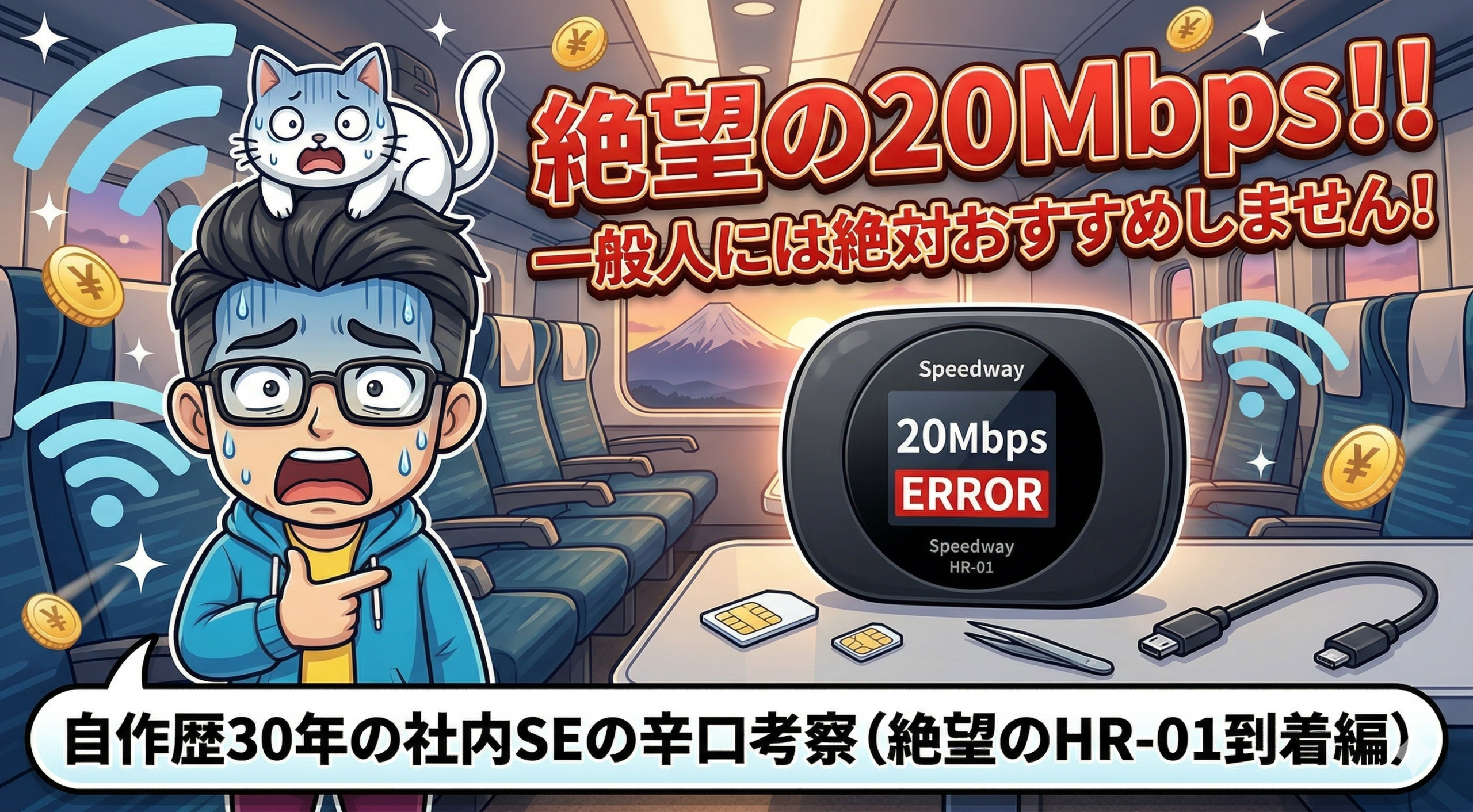 こんにちは!『まさやんのガジェットラボ』管理人のまさやんです。 前回の「300円の伏兵」W03による爆速検証で、期待値が最高潮に達した状態からお送りします。いよいよ本命、1,999円の新品ルーター「Speedway HR-01」の登場です!